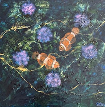 I painted and continue to paint my Ocean Lovers – Angel and Clown Fish series for three museums (Havre de Grace Maritime Museum, CUHK Jockey Club Museum of Climate Change, Hong Kong, and Lord Howe Island Museum, Australia) to draw attention to the need to protect our oceans. This art show is endorsed by the United Nations Ocean Decade.